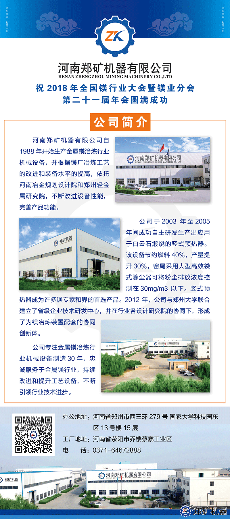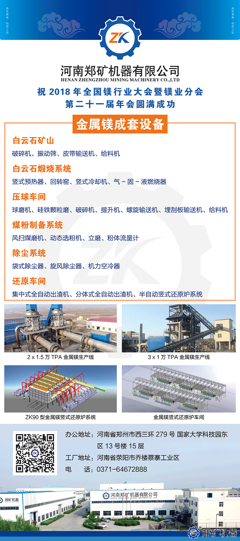 鄭礦機器祝2018年全國鎂行業(yè)大會(huì )暨鎂業(yè)分會(huì )*二十一屆年會(huì )圓滿(mǎn)成功