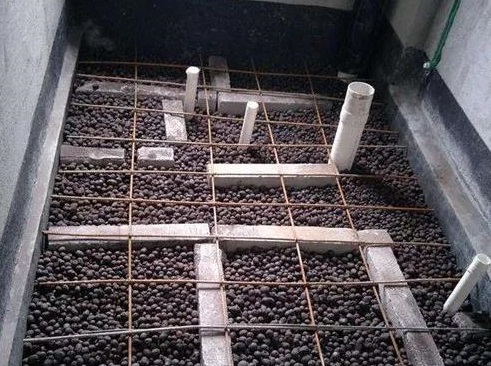 樓地面、管道、廚、廁和軟基礎的回填和墊層:輕質(zhì)陶粒用于墊層可提高樓層的保溫、隔熱、隔音及承載力,可方便地面中管線(xiàn)的布置和安裝陶粒節能磚,可防止樓地面回潮;用于衛生間廁盆、浴缸回填,大幅減輕樓面荷載。